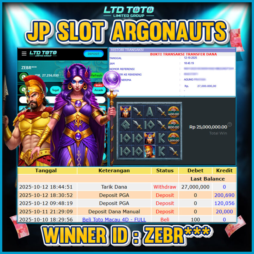 LTDTOTO JACKPOT ARGONAUTS RP 27.000.000 MINGGU 12 OKTOBER 2025