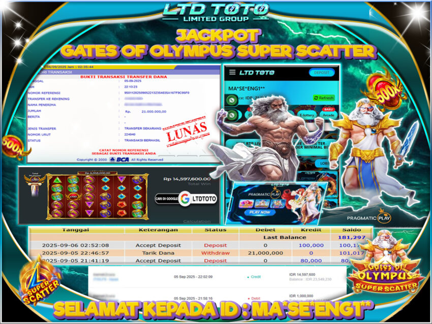 LTDTOTO JACKPOT GATES OF OLYMPUS SUPER SCATTER RP 21.000.000 SABTU 06 SEPTEMBER 2025