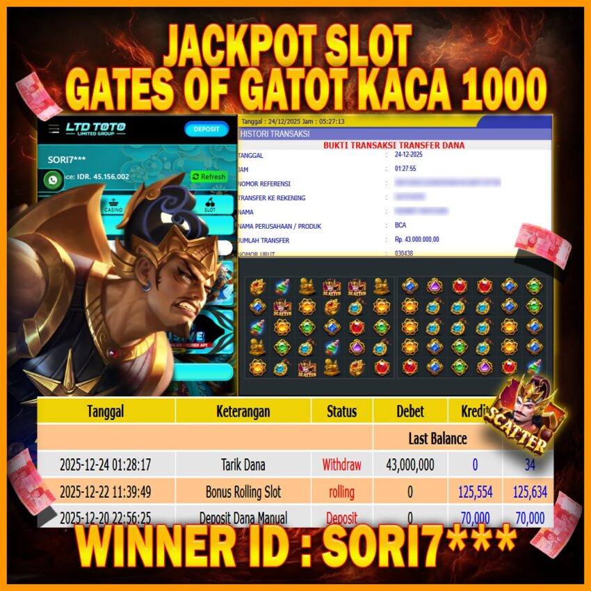 LTDTOTO JACKPOT GATES OF GATOT KACA 1000 RP 43.000.000 RABU 24 DESEMBER 2025