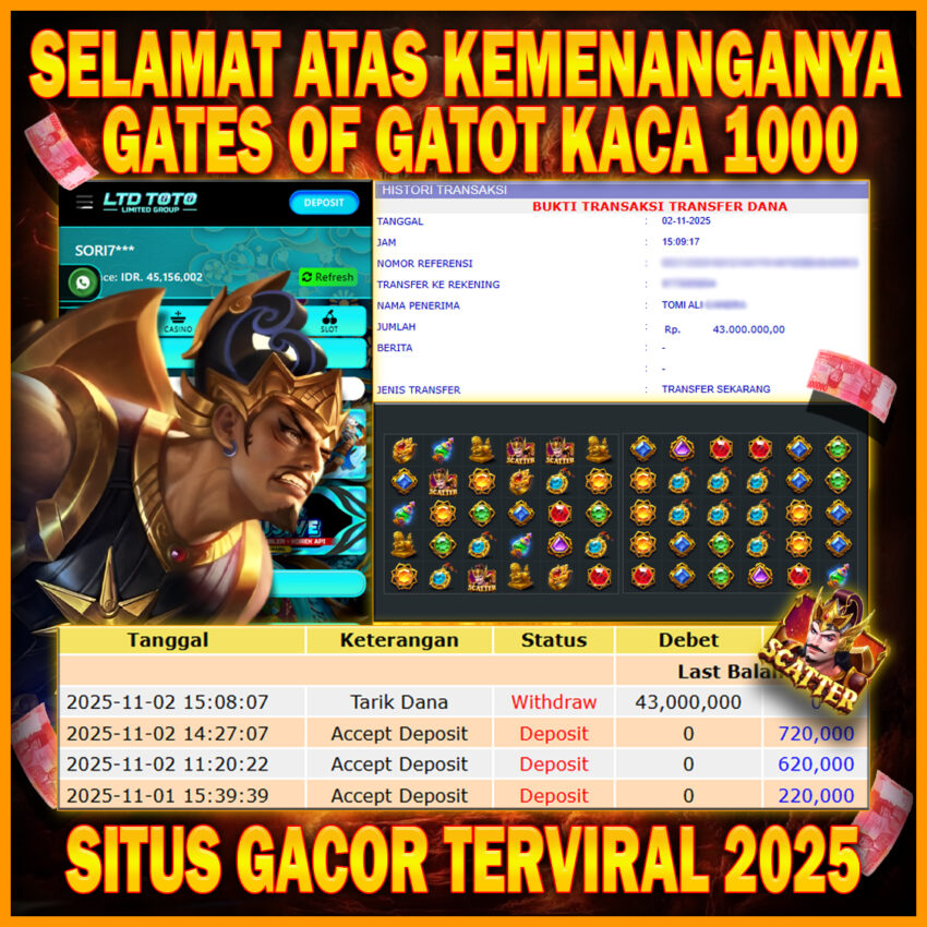 LTDTOTO JACKPOT GATES OF GATOT KACA RP 43.000.000 MINGGU 02 SEPTEMBER 2025