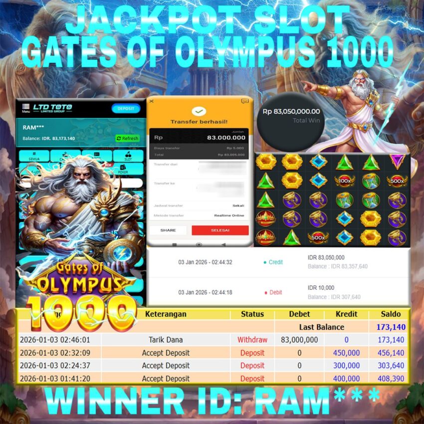 LTDTOTO JACKPOT GATES OF OLYMPUS 1000 RP 83.000.000 SABTU 03 JANUARI 2025