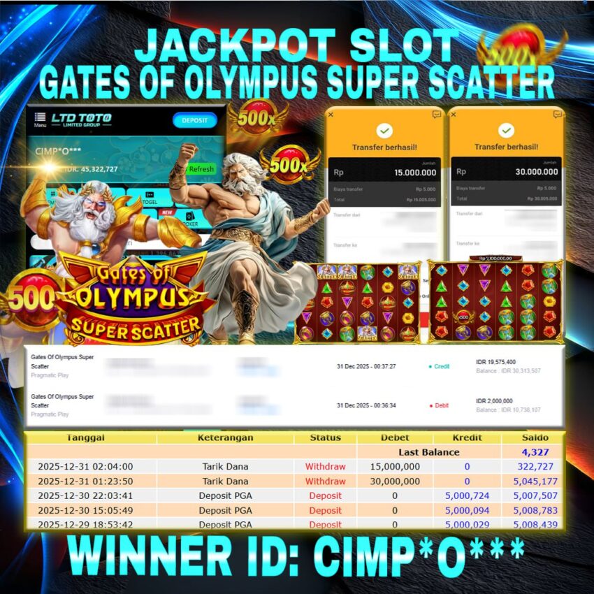 LTDTOTO JACKPOT GATES OF OLYMPUS SUPER SCATTER RP 45.000.000 SELASA 30 DESEMBER 2025