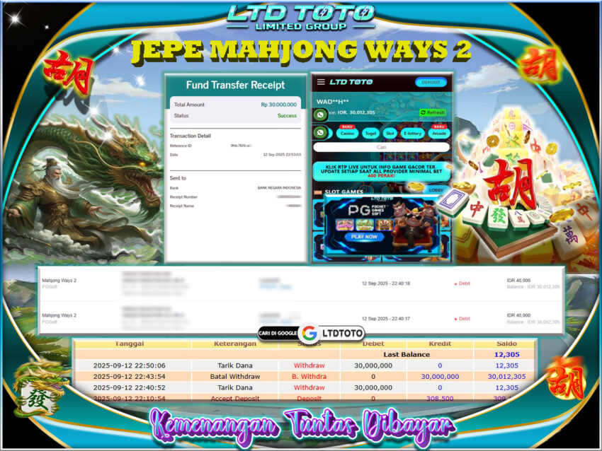 LTDTOTO JACKPOT MAHJONG WAYS 2 RP 30.000.000 SABTU 13 SEPTEMBER 2025
