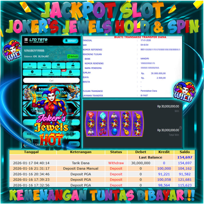 LTDTOTO JACKPOT JOKER’S JEWELS HOLD&SPIN RP 30.000.000 SABTU 17 JANUARI 2026