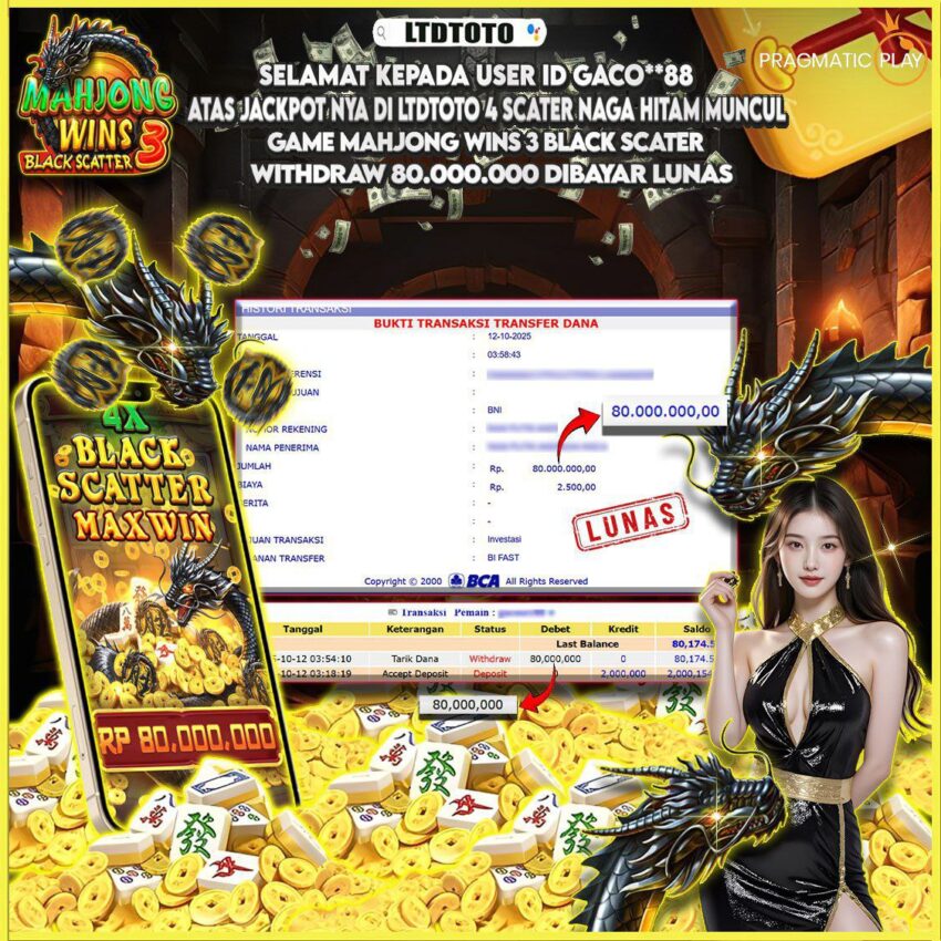 LTDTOTO JACKPOT MAHJONG WINS3 BLACK SCATTER RP 80.000.000 MINGGU 12 OKTOBER 2025