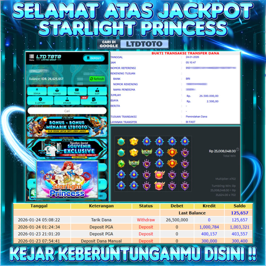 LTDTOTO JACKPOT STARLIGHT PRINCESS RP 26.500.000 SABTU 24 JANUARI 2026